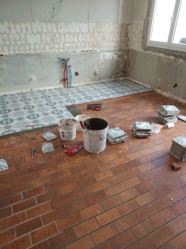 - Pose de carrelage : adaptée à tous types de sols, pour un résultat durable et élégant.